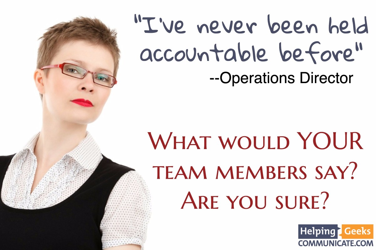 Before you say “Wow – I can’t believe that someone actually said that. No one on MY team would say that. I’m crystal clear with them, and I do a good job of holding people accountable.”