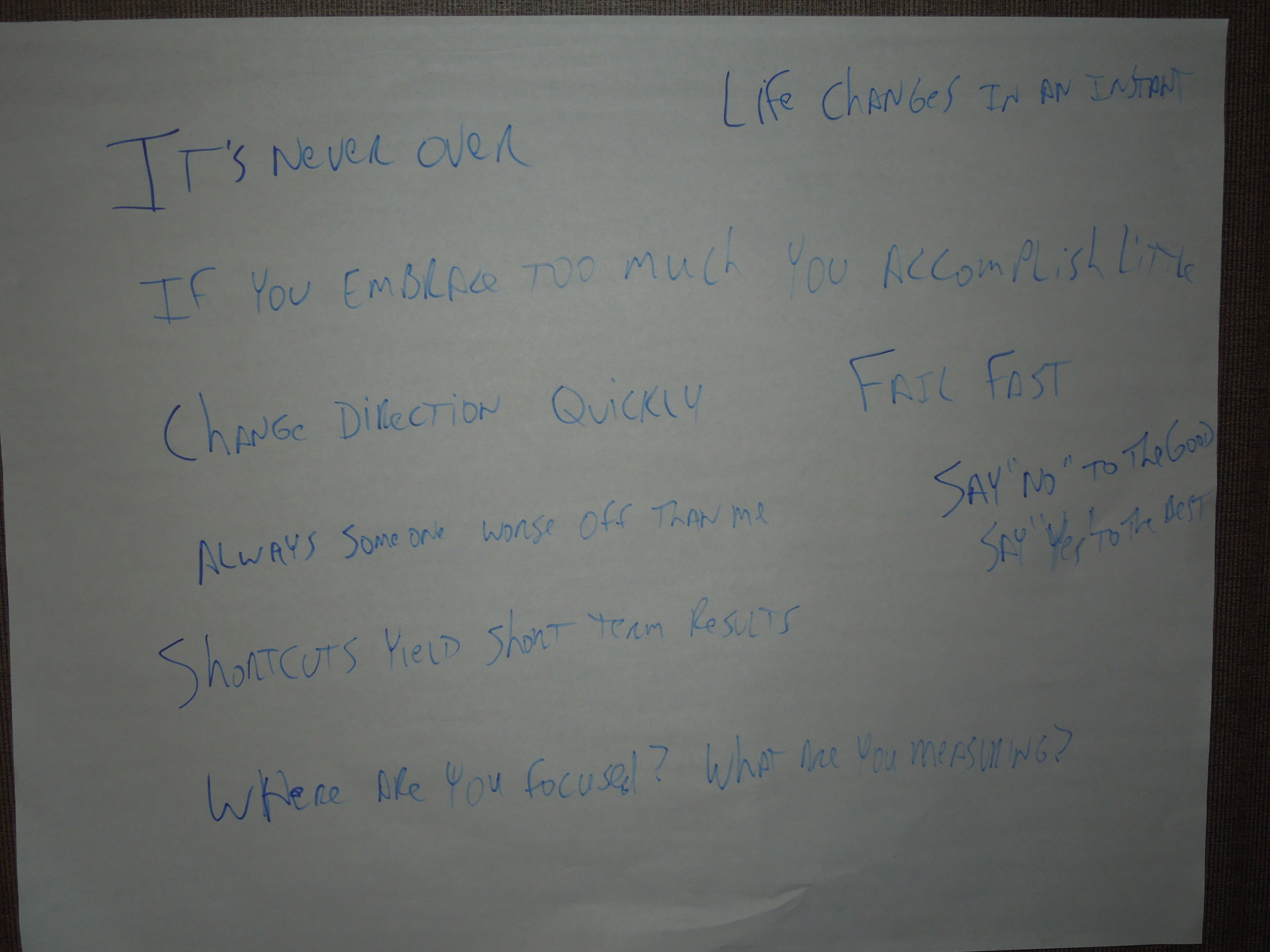 I was leading a “Too Busy To Plan” program recently and I asked the group “What’s something that you’ve learned the hard way about planning?”